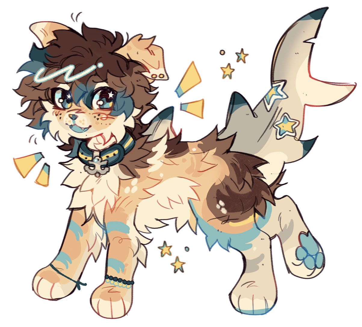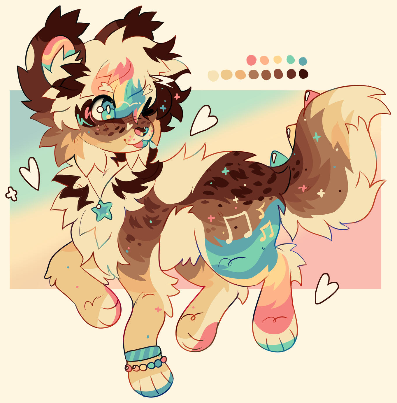 this is all accurate as of 4/20/25, customs ordered before may be subject to different terms.customs start at $90 and go up with complexity and any add-ons. I will communicate with you on pricing beforehand and figure things out!! for the price of $90, you're getting a design tailored to your parameters - a fullbody and reference information if you request it!! (reference information includes 2-3 bullet points about your character, name, and a color palette on the canvas. might also feature small doodles - seen in some examples!)add ons include any extra reference information beyond that, extra art, or extreme complexity!!I usually don't charge for complexity unless it's heavily out of my comfort zone or has many design elements beyond colors/pelt.I work best off of visuals/moodboards/pinterest boards, though can work off of anything.customs are currently closed